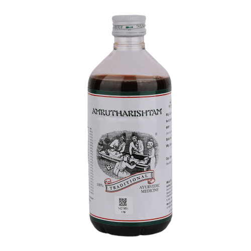 Amrutharishtam is a specific liquid Ayurvedic formulation made from highly effective antipyretic herbs, also known as Amritarishta. It is widely used for managing various types of fevers and viral infections, including chronic fever, intermittent fever, viral fever, malaria, dengue, typhoid, and chikungunya. It helps boost immunity to fight bacterial and viral infections and relieves symptoms such as body pain, restlessness, cough, cold, indigestion, fatigue, headache, and high temperature.