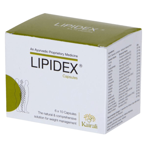 Kairali’s Lipidex Ayurvedic weight loss capsule is a researched herbal formulation of 18 effective Ayurvedic herbs. It is a safe and comprehensive solution for weight management which organically improves the digestion process by eliminating toxins from the body.